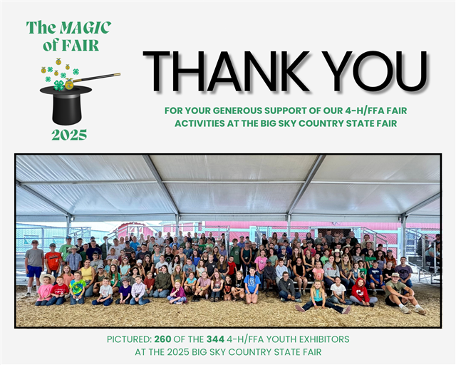 Thank you to all that participated, families that supported, volunteers that helped and sponsors that donated to make the 2025 Big Sky Country State Fair a
